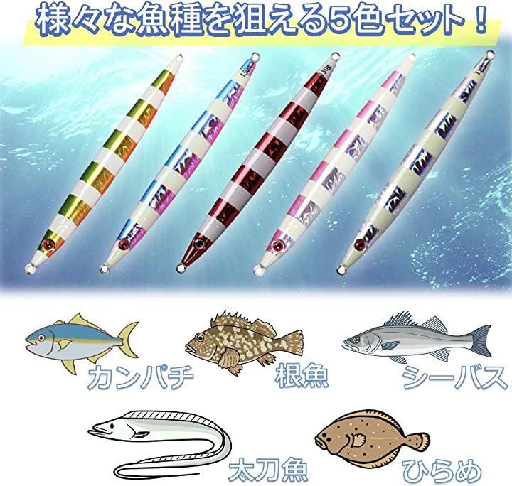 魚種を問わず幅広く使えて魚の目を引くカラフルなデザインのジグ。