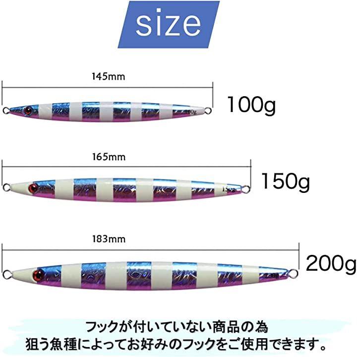 素材にはメタル素材を採用し硬さや強度が優れているため大物を狙う際にも活用可能。フックがついていないタイプの商品ですので、狙うターゲットや釣りを行う場所に合わせてフックを取り付けてご使用頂けます。