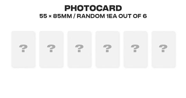 - PHOTOCARD : 55 x 85 mm / 6種類のうちランダム1種類封入(バージョン別イメージ同一)