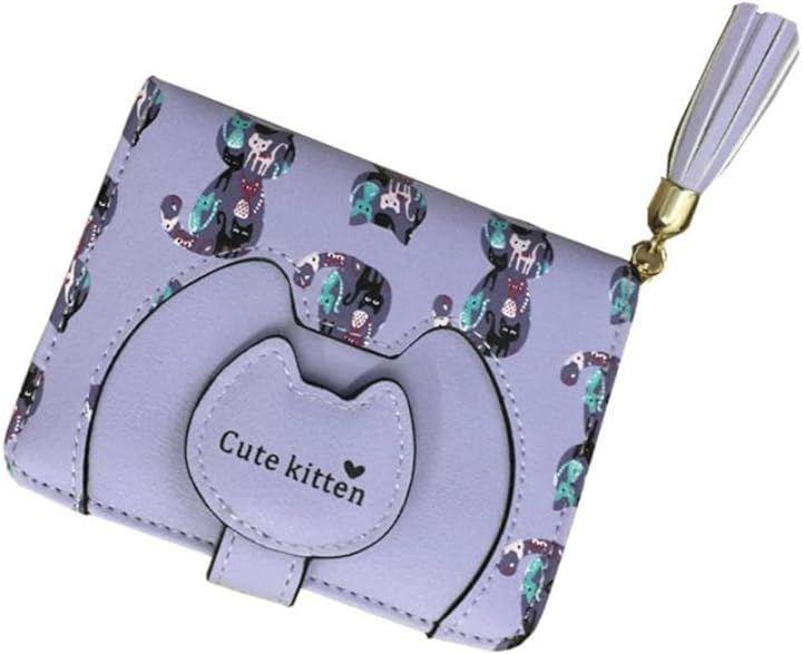 Bi-fold wallet, cat, PU leather, synthetic leather, snap closure, zipper closure, tassel, for elementary school students, middle school students, girls, casual
