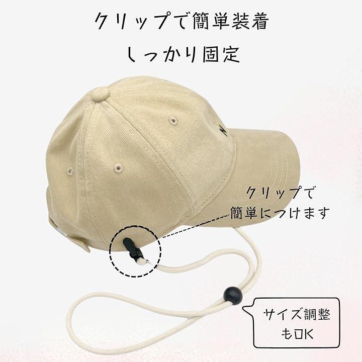 「風飛び防止」強風でも帽子をしっかりキープ。このクリップストラップは、帽子が風で飛ばされる心配を解消します。