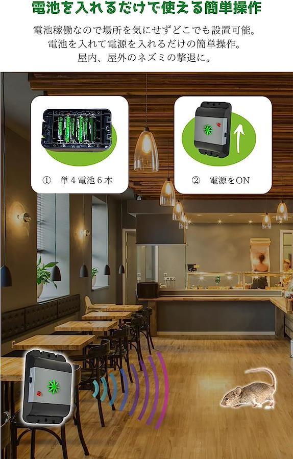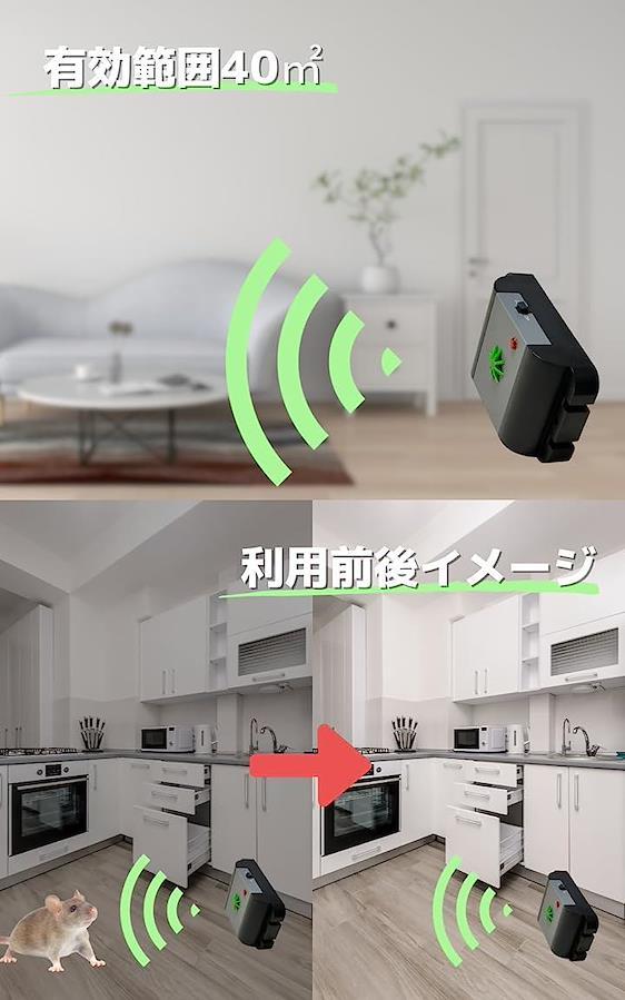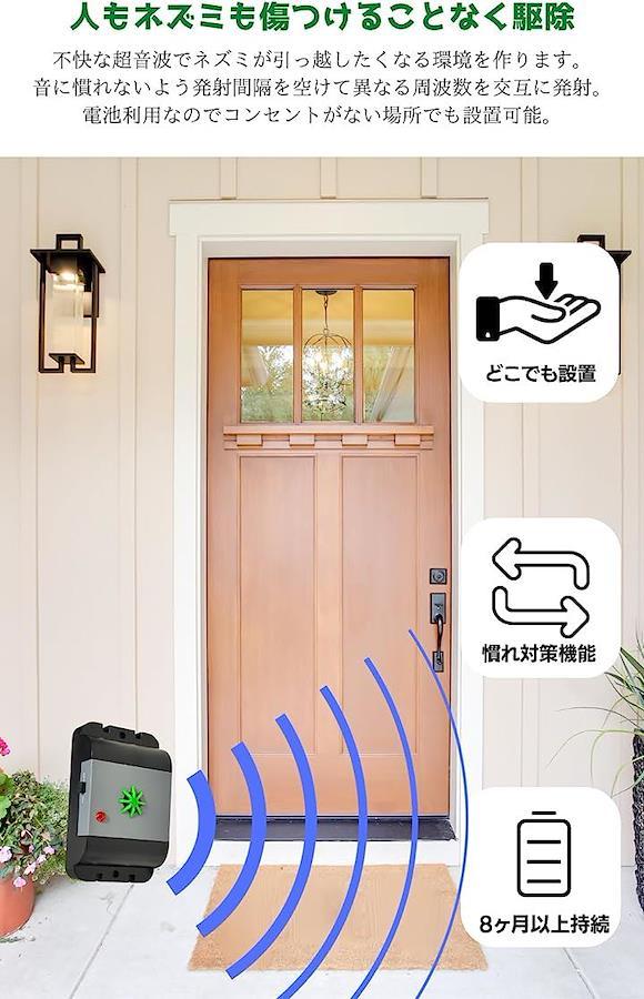 ・ねずみの好まない周波数の超音波でねずみ駆除。