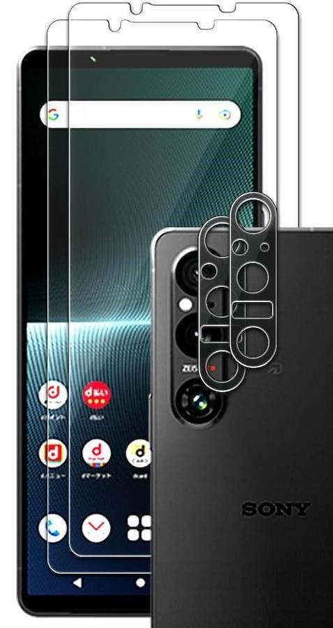 クリアガラスフィルム2枚+クリアカメラレンズ保護ガラスフィルム2枚セット