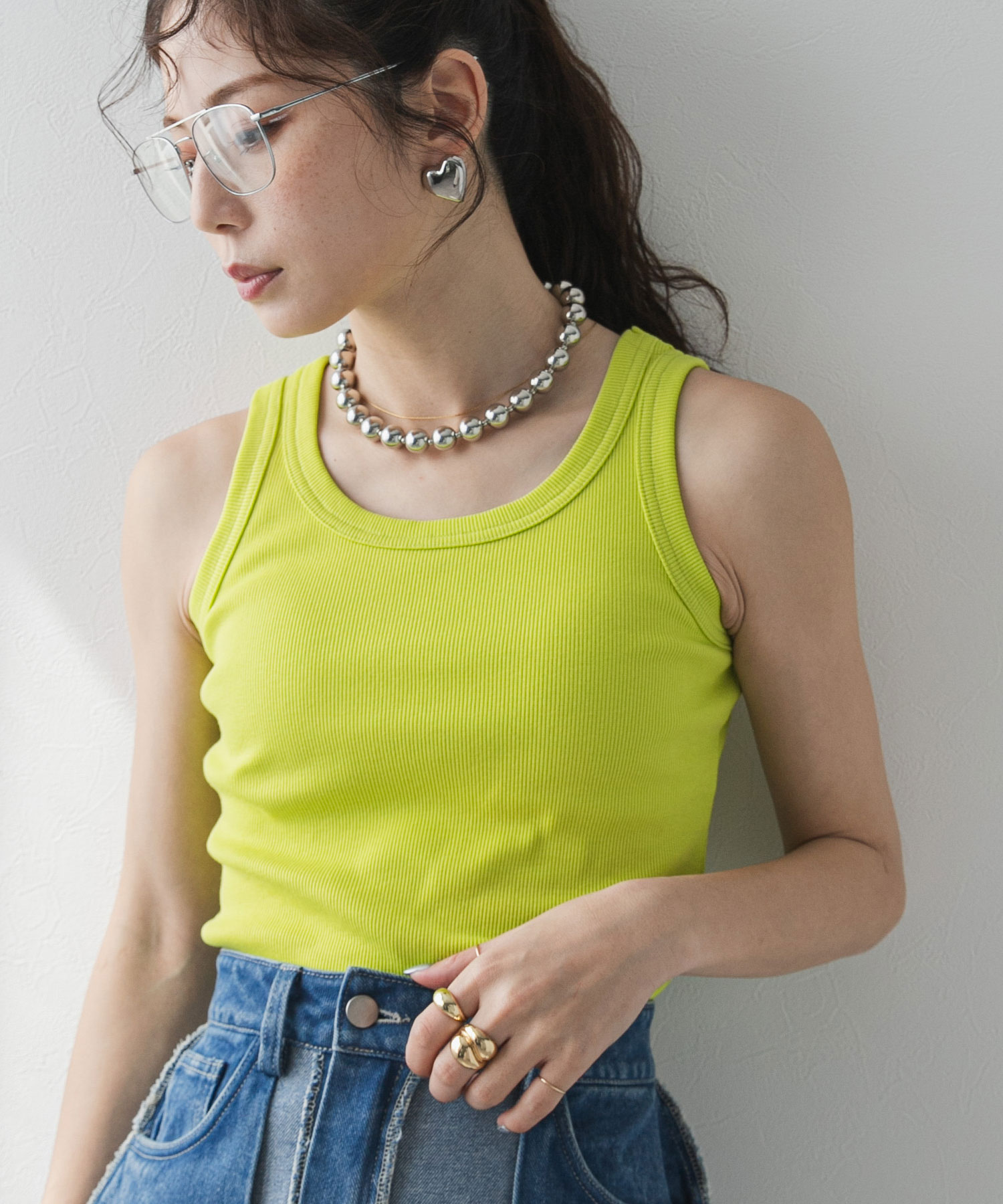スタイリッシュな印象のアメスリニットタンク。
