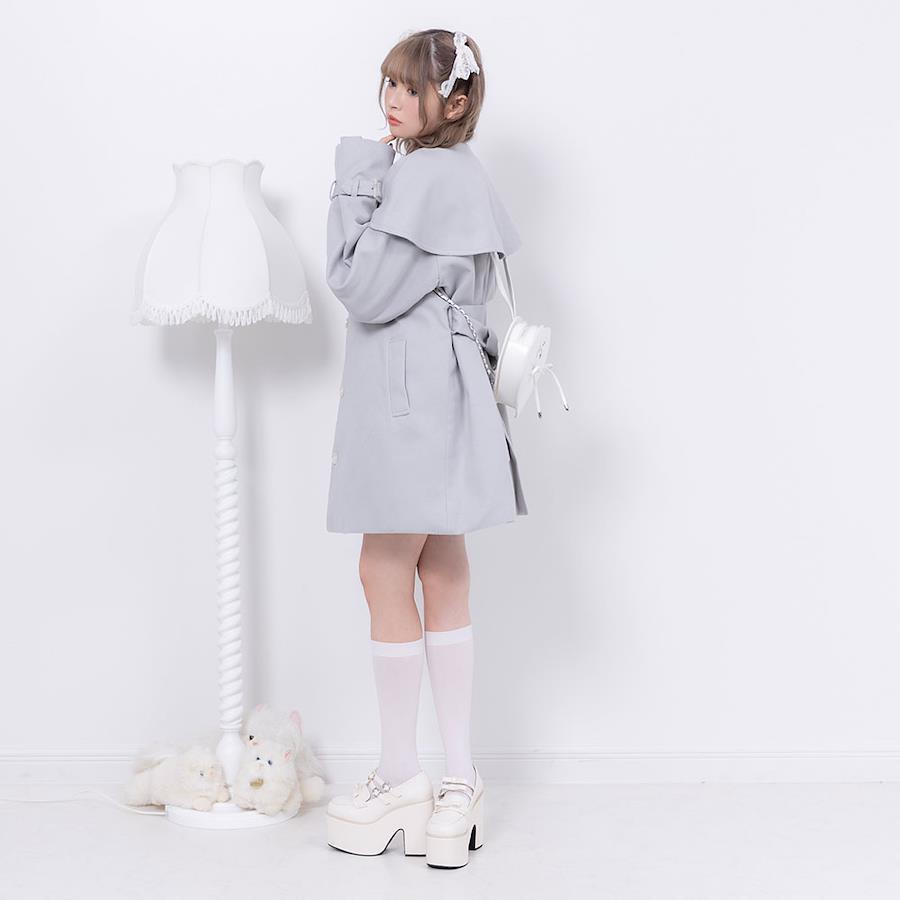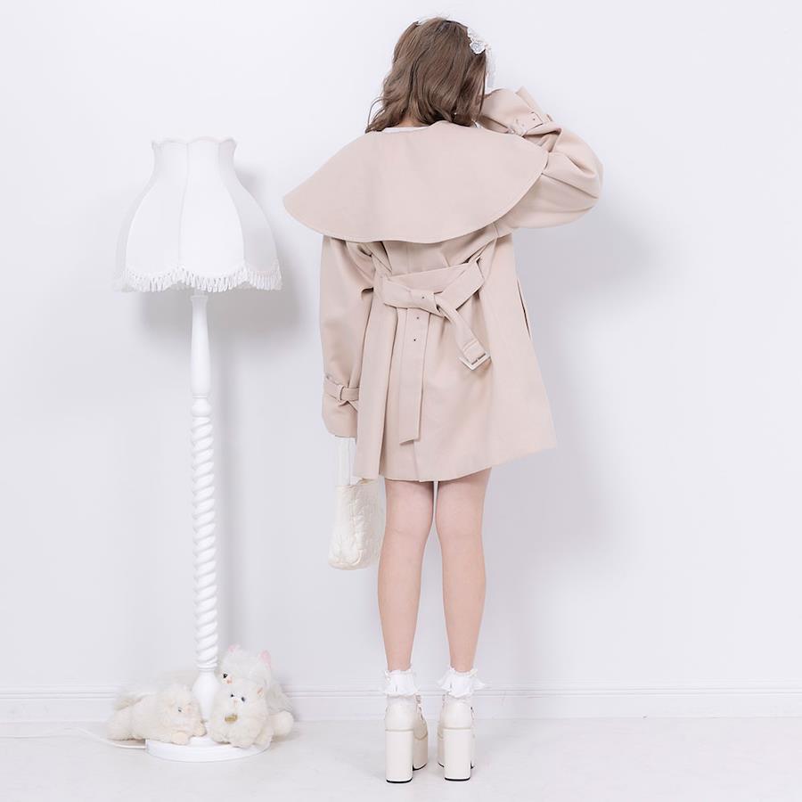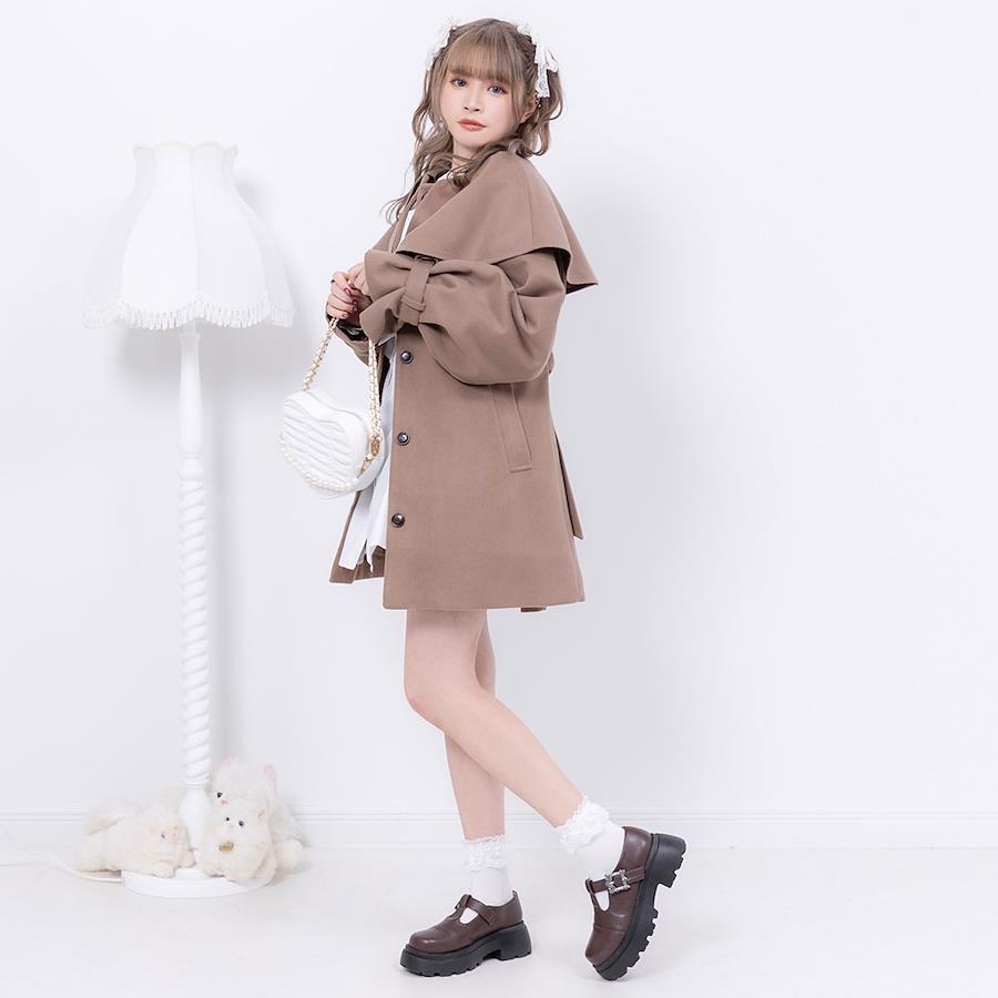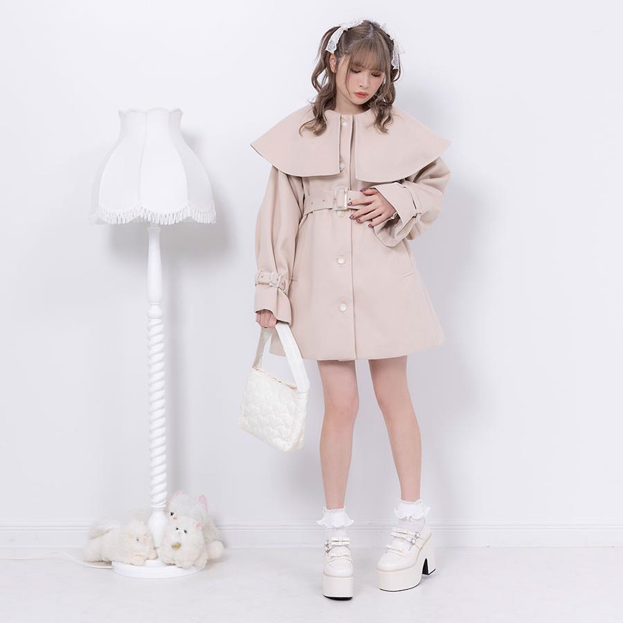 ケープが目を惹くショートコートのご紹介。【デザイン】何にでも合わせやすい万能デザイン。ケープは取り外しができるのでシンプルに着こなすことも。便利なポケット付きです。【素材】表面はフェルトのような微起毛になっています。裏地もついているので風を通さずあったかいです。【コーディネート】ブーツと合わせてキレイめに仕上げるのがオススメです。《透け感》なし 《生地の厚さ》普通 《裏地》あり 《伸縮性》なし《生産国》中国