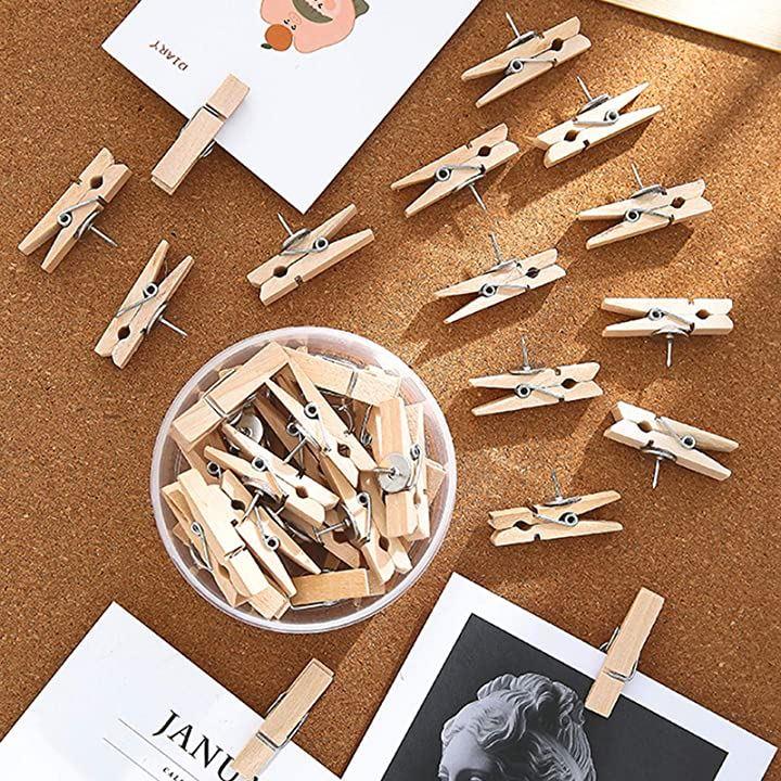 木製クリップ付きプッシュピンx20個木製クリップの裏にはプッシュピンが1個付いています。