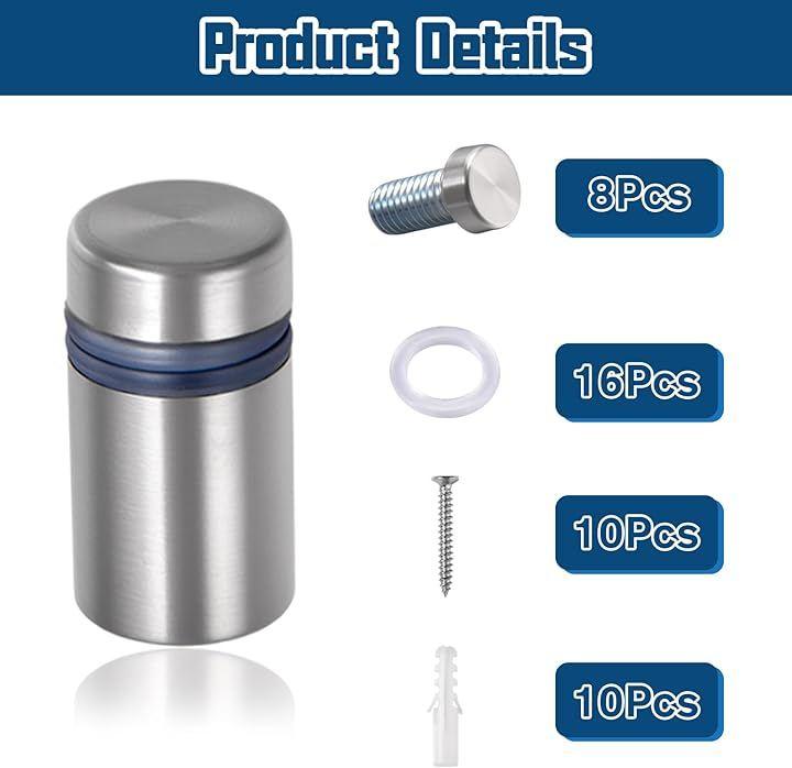 そして、ビスを広告釘の底に通して壁と接続し、最後にビスをガラスに通し、広告釘の根元で締め付けて、取り付けは完了です。