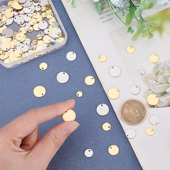仕様: 素材:201ステンレス鋼 カラー:2色 平円:約6 x 1 mm、孔:1.2 mm、2色、40個/色 平円:約8 x 1 mm、孔:1.2 mm、2色、30個/色 平円:約10 x 1 mm、孔:1.2 mm、2色、20個/色 平円:約12 x 1 mm、孔:1.4 mm、2色、10個/色 収納ボックス:約6.8x5.2x1.1cm、1個 パッケージ:合計200個 商品の説明: - この製品は高品質の201ステンレス鋼を作られ。