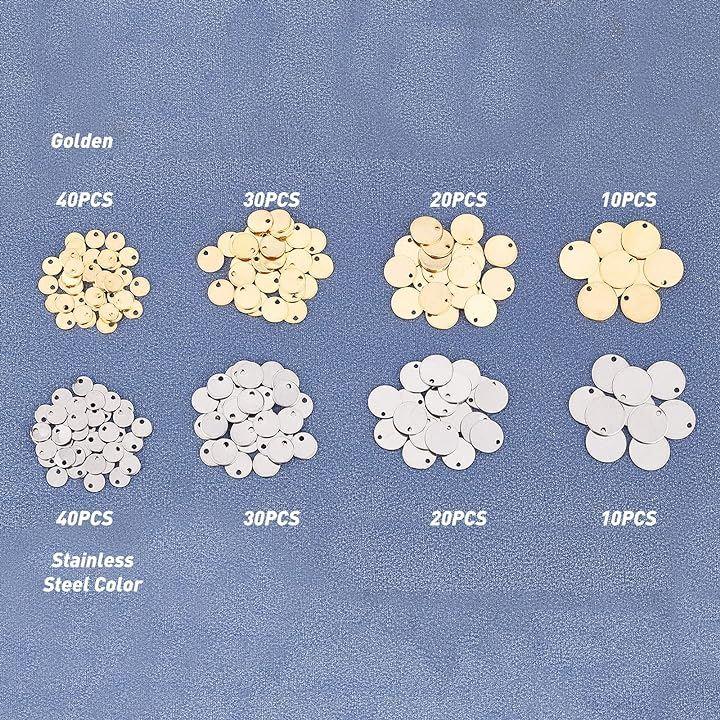2色:金とステンレス鋼カラーの色の合計200個の刻印タグセットです。