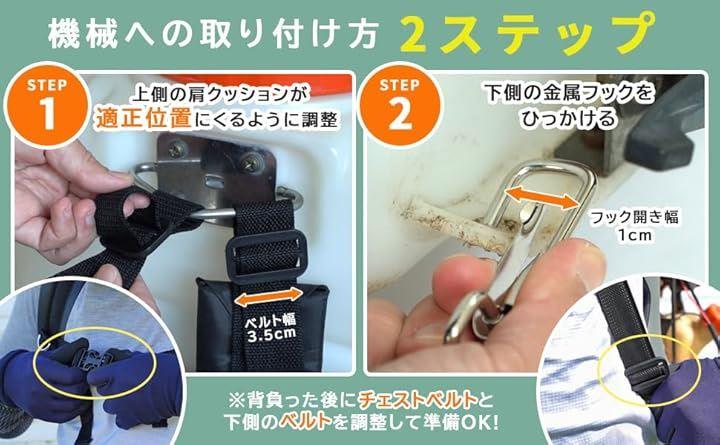 「適応背負い機械」 本製品は、背負い式エンジン草刈機、動力噴霧器、背負式噴霧器、背負動力噴霧機、除草剤散布機、背負い式肥料散布機、背負い式携帯型集塵機、背負い式草刈り機、背負い式電源などに対応しています。
