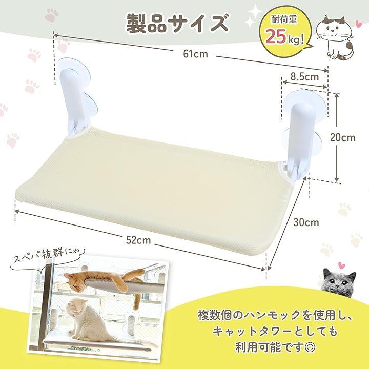 「お客様の声を元にグレードアップ。」猫ちゃんが安心してのびのびとくつろげるよう、ハンモックの端を上向きに改良しました。また、吸盤専用の強力な両面テープ9個が付属しており、さらに安定感・安心感がアップしました。
