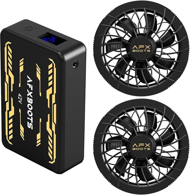 「セット内容・スペック」バッテリーx1、ファンx2、ファンケーブルx1、充電ケーブルx1、取扱説明書x1。