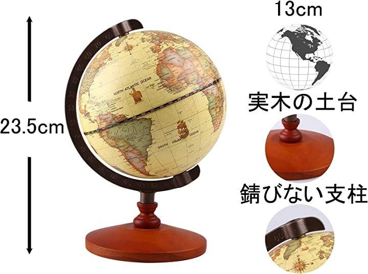 ・サイズ(約):全長 23.5cm 地球径13cm 重量:250g 材質:木 銅 ポリ塩化ビニル 他 *環境に優しく安全な素材を選んでおります。