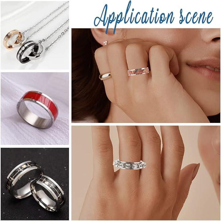 カーブチェーン、ストーン、ラインストーン、ダイヤモンド、クラッシュオパール、木材、チップジェムストーンなどをDIYパーソナライズしたフィンガーリングにインレーできます。