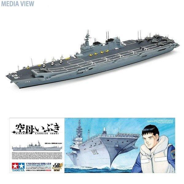 タミヤ 1/700 DDV192 空母いぶき プラモデル 25413★船体は一体成形パーツ。前部と後部の艦橋は舷窓なども精密に彫刻し、マストや各種のアンテナ類も繊細な仕上がり。★中央エレベーターは下がった状態と、フラットな状態を完成後も選択可能。★戦闘機の発艦時に使用するブラストディフレクターは、展開状態と格納状態を選んで組み立てられます。★劇中に登場する艦載機や、甲板上の作業車輌なども豊富にセットしました。【付属品】・戦闘機×10機(駐機状態8機と、リフトファンを作動させた状態2機)・哨戒ヘリコプター×4機(ローターは展開状態と格納状態を選択可能)・牽引車×4台・艦載救難作業車×4台・ヘリコプター牽引装置×4台(C)KAWAGUCHI・EYA/SHOGAKUKAN(C)かわぐちかいじ・惠谷 治/小学館全長:354mm(1/700スケール)プラスチックモデル※組み立て・塗装の必要なプラモデルです。※商品の画像は実際の商品と異なる場合が御座います。