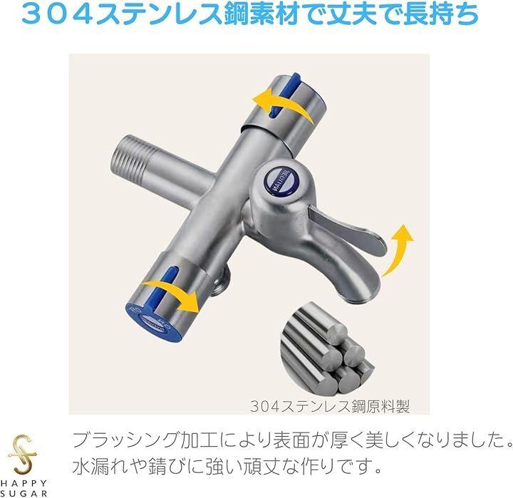 「多機能で効率的な3分岐設計」 一つの蛇口から3つの出水口があり、洗濯・散水・洗車など複数の用途を同時に行えます。