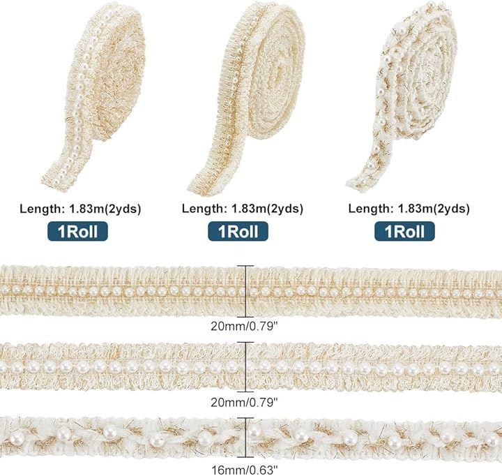 3 スタイルのレース:パッケージには、3スタイルのポリエステル・トリムが3本;各スタイル1本ずつ、1スタイルにつき約2ヤード(1.8m)、幅16~20mm。