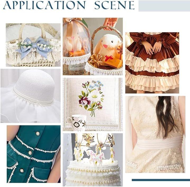 ヨーロッパ調のトリムリボン:ビーズリボンはハンドメイドで、非常に高い光沢と繊細なフェイクパールを使用しており、とても繊細でまばゆい輝きを放ちます。