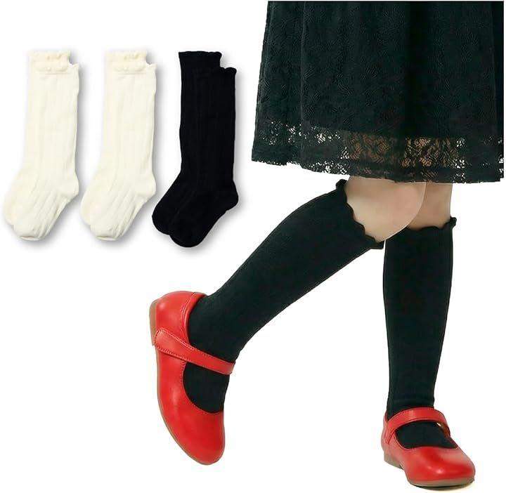 「使いやすい2色セット」白・白・黒のモノトーンカラーが揃った、上品でシンプルなキッズ用ハイソックス3足セット。