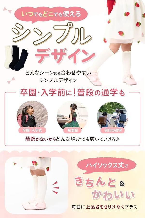 「使いやすい2色セット」白・白・黒のモノトーンカラーが揃った、上品でシンプルなキッズ用ハイソックス3足セット。