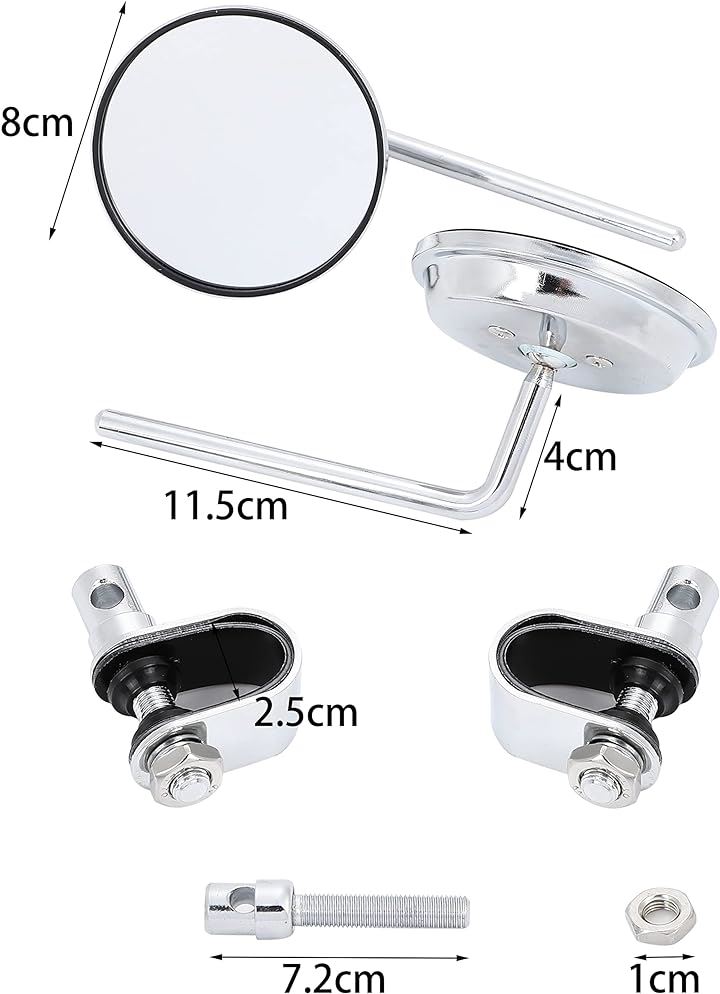 「詳細」ミラー直径約8cm、ステー11.5cm、クランプ径2.5cm