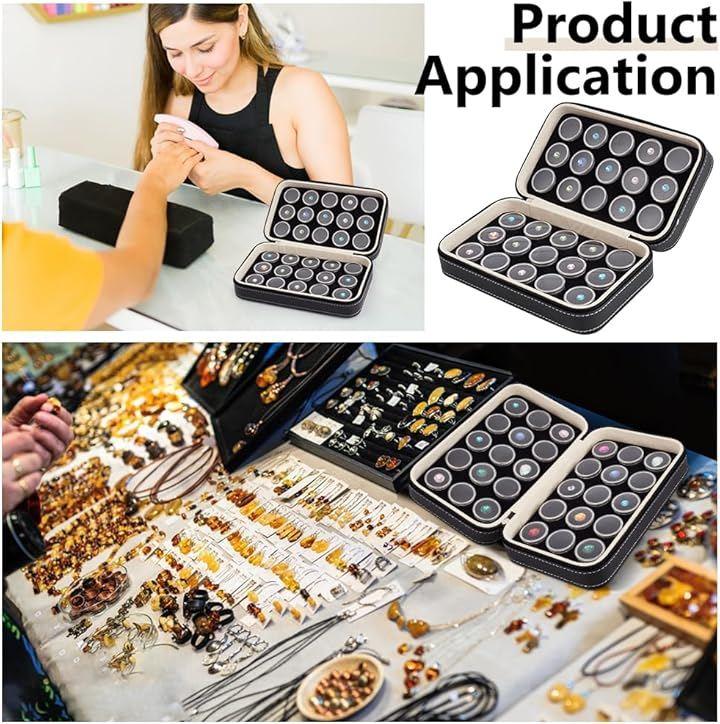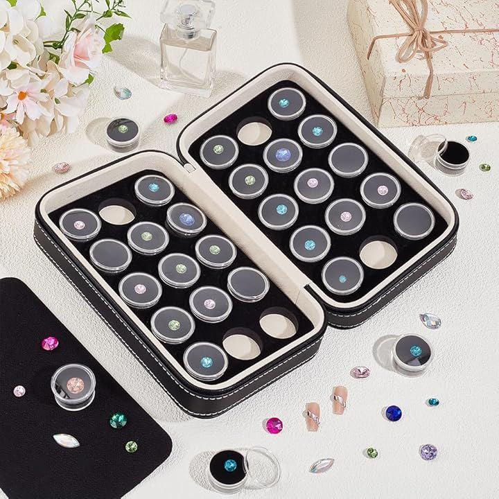 PUレザースーツケース付き:黒いスーツケースが大きく、30個丸い宝石箱はちょうど中にきちんと収納されられて、収納をより秩序立て、持ち運びにも便利です。
