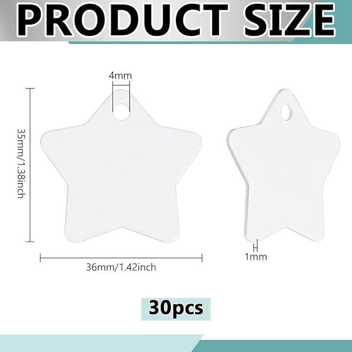 30 Aluminum Name Tags with Blank Pendants, Identification Tags, Engravable, Double-Sided Heat Transfer, for Dogs, Cats, and Pets, Suitable for Collars