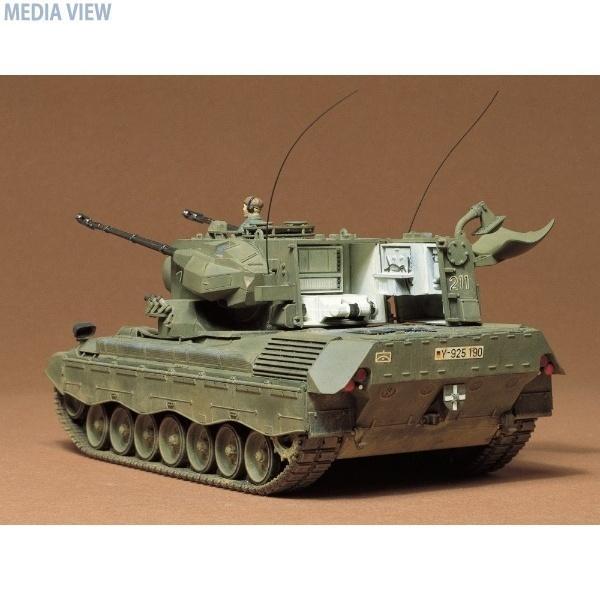 タミヤ 1/35 ミリタリーミニチュアシリーズ No.99 西ドイツ陸軍 ゲパルト 対空戦車 プラモデル 35099 第二次大戦後、西ドイツが開発したゲパルト。世界でも最も進んだ射撃管制システムを持つと言われるこの対空戦車を再現したプラスチックモデル組み立てキットです。有効射程4000mの強力な35mm連装砲と前後にレーダーを装備したメカニカルな姿をリアルにモデル化しました。もちろん砲身やレーダーは可動式、砲塔後部も開閉可能で内部の電子機器も立体感豊かに再現。エンジンデッキのグリルには実感を高める金属ネットをセットしました。ベレー帽を着用したコマンダーの人形1体付き。全長=226 mm※写真はキットを組み立て、塗装したものです。
