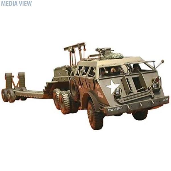 第二次大戦中最大のアメリカの戦車運搬車ドラゴンワゴンのプラスチック組み立てキットです。スケール1/35、迫力あふれる姿をリアルにモデル化。トラクターの装甲キャビンはスライド金型を使用して一体成形、実感とともに確実な組み立てを追求。防弾窓は開閉選択式。タンデム型ウインチも効率的なパーツ構成で立体感豊かに再現、楽しみながら組み立てられます。ホイールガードや可動式スキッドを備えたトレーラーも重量感あふれる仕上がり。タイヤはリアルな中空ゴム製。エッチングパーツやチェーン、パイプなど金属部品も豊富にセット。モデルの仕上がりにいっそうの精密感を与えます。トラクターの前輪はステアリング可動、さらにカプラーやトレーラー後部のスキッド、タンデムアクスルユニットも実車同様に可動します。室内や足回りも高い実感で再現。乗員の人形2種4体付き。接着剤別売。