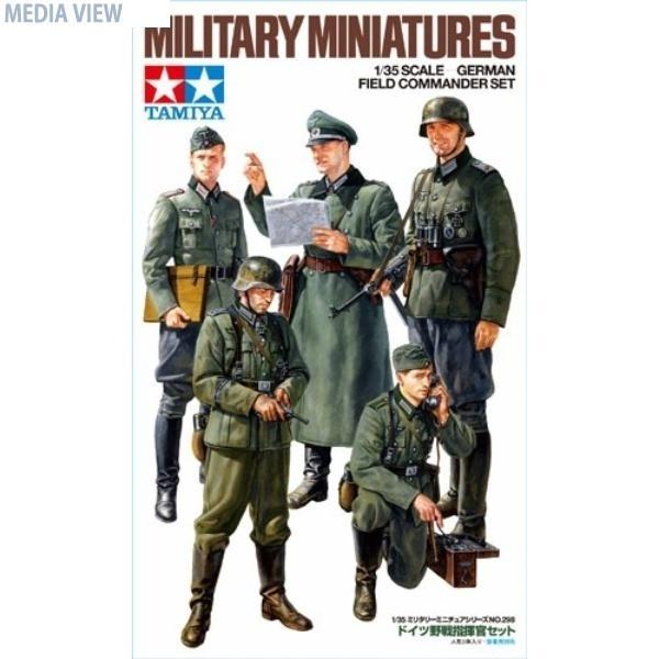 第二次大戦中のドイツ軍将校を中心とした人形5体のプラスチックモデル組立てキットです。地図を片手に目標を指し示す上級将校、鞄とマップケース、MP40を手にする野戦士官に加え、ルガーP08を点検中の下士官、野戦電話で連絡中の通信兵など、確かなプロポーションとシャープな彫刻表現でモデル化。MP40やルガーP08、ホルスターや鞄、野戦電話などの装備品も立体感豊かな仕上がり。※階級章や勲章などは別売りの1/16 1/35 ドイツ兵階級章デカールセット(Item 12625)を使うと仕上がりが引き立ちます。第二次大戦中のドイツ軍将校の制服は基本的に兵士用と同じデザインでしたが、オーダーメイドが許されていたため、その着こなしはスマートで、材質も高級なものが使用されています。コートなども同様で、兵士のものとは別物でした。また乗馬ズボンと乗馬ブーツの着用も一般兵士とは異なる点でした。自衛用火器として通常ルガーP08やワルサーP38などの拳銃を携行しましたが、前線では将校みずからMP40サブマシンガンを持って部隊の先頭に立つことも少なくありませんでした。