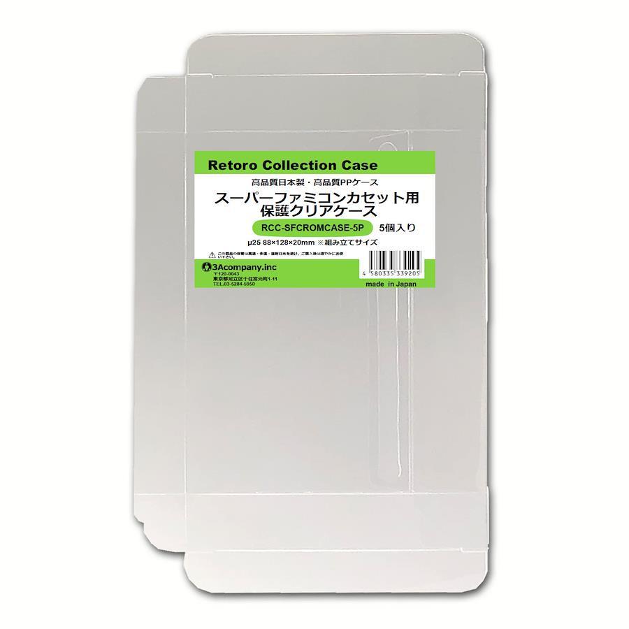 【商品説明】 ■3Aカンパニーの「RetoroCollectionCase/レトロコレクションケース」シリーズ商品です。 ■スーパーファミコンソフト(SFC)にジャストフィット!大切なコレクションをキレイに保管! ■PVC素材のハードケースで大切なコレクションを衝撃・箱潰れ・傷・汚れから守ります。 ■カセットのラベルや端子の汚れから保護します。 ■プレミアム商品や思い出のソフトのディスプレイケースとしてもおすすめです。 ■東京都の包装関連製造工場で製作した高品質日本製保護クリアケースです。 ■お得な5枚入り、組み立て式。 【商品仕様】 ■対象商品:スーパーファミコンカセット(パッケージなし) ■素材:PP ■入数:5枚 ■サイズ:縦88×横128×奥行20mm、ケース厚み25μ ■生産国:日本(東京都) ■発売日:2021年11月11日 ■保証期間:初期不良のみ ■メーカー名:3Aカンパニー ■ブランド名:RCC(RetoroCollectionCase/レトロコレクションケース) ■型番:RCC-SFCROMCASE-5P 3Aカンパニーの「RetoroCollectionCase/レトロコレクションケース」シリーズ商品です。 スーパーファミコンソフト(SFC)にジャストフィット!大切なコレクションをキレイに保管! PVC素材のハードケースで大切なコレクションを衝撃・箱潰れ・傷・汚れから守ります。 プレミアム商品や思い出のソフトのディスプレイケースとしてもおすすめです。 東京都の包装関連製造工場で製作した高品質日本製保護クリアケースです。
