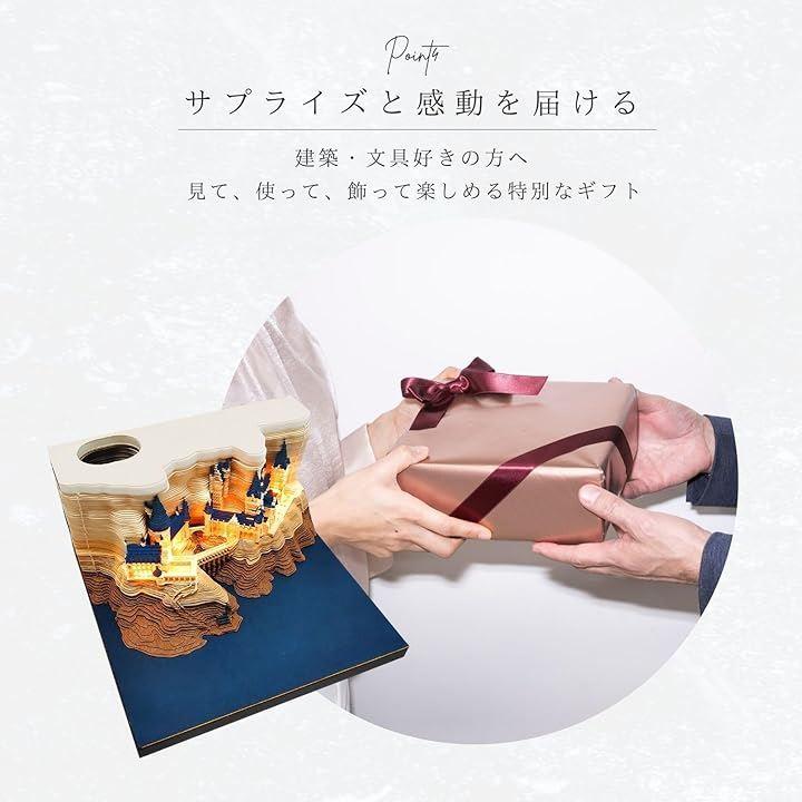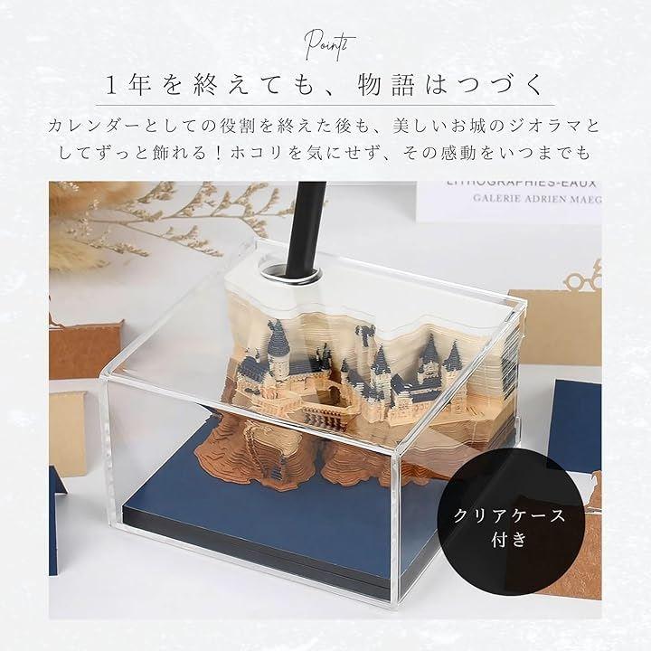 「週ごとに姿を現す、驚きの3Dジオラマカレンダー」 毎週1枚ずつカレンダーをめくるたびに、少しずつ浮かび上がる幻想的なお城の姿。