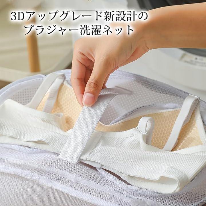 「3Dアップグレード新設計のブラジャー洗濯ネット」最新デザインのブラジャーに対応する無蛍光洗濯ネット(立体サポートシェル内蔵),洗濯後はそのままネットごと干せちゃう優れ洗濯ネット。