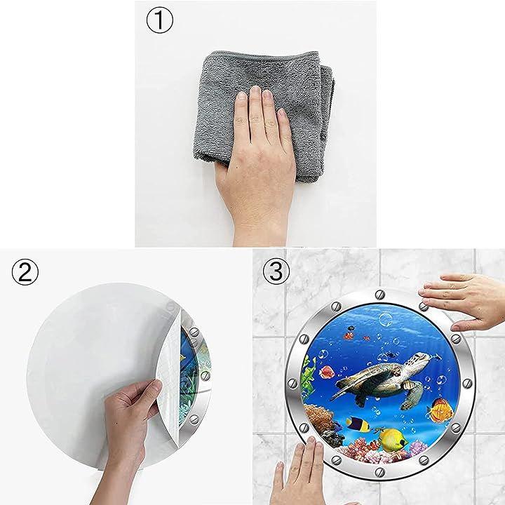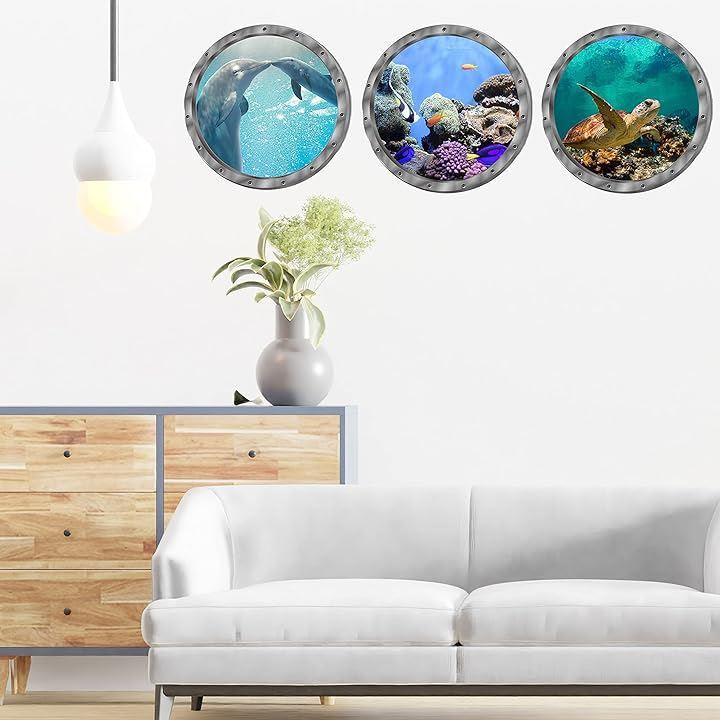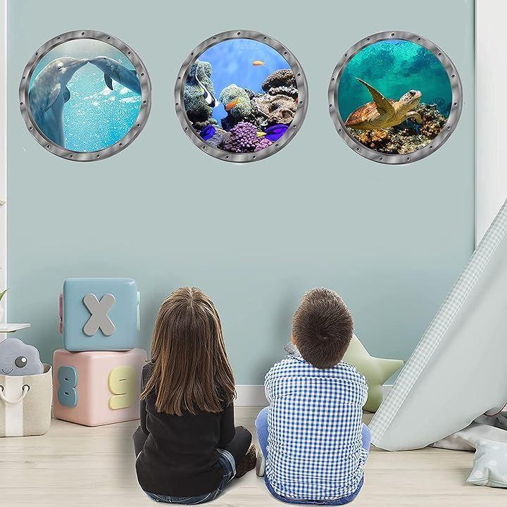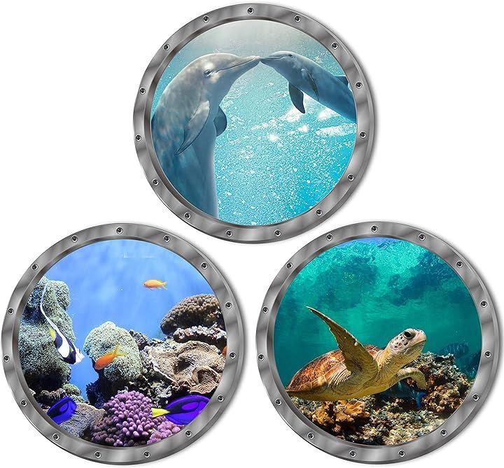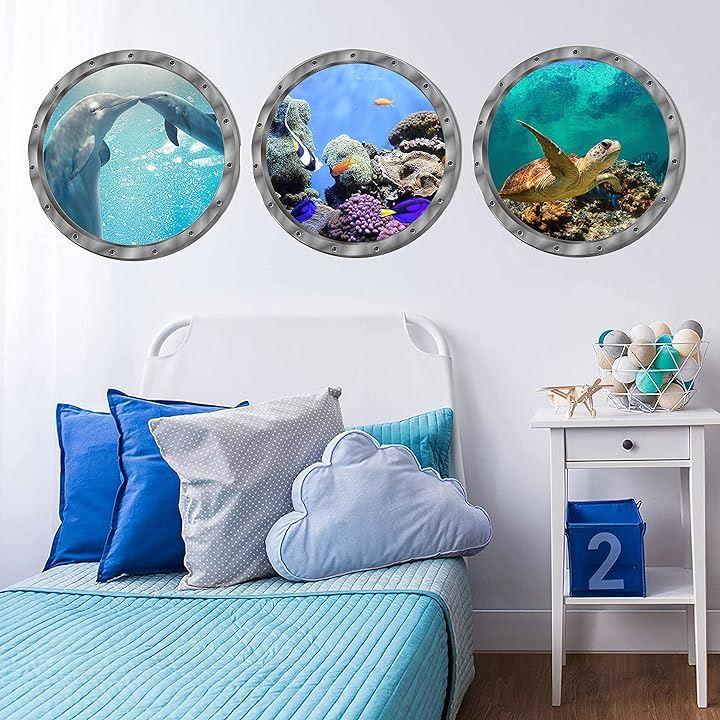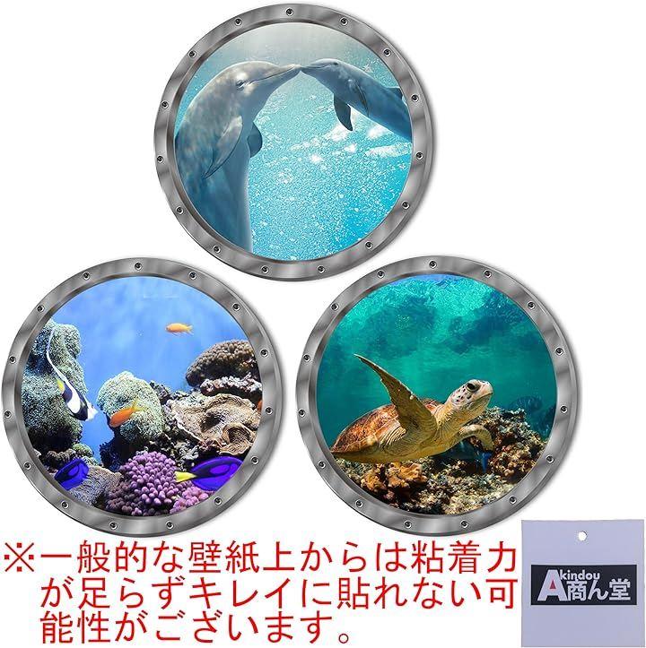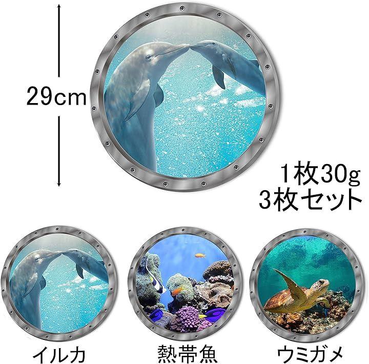 まるで潜水艦の小窓から海中生物を観察しているかの気分が味わえる約29cmの3Dウォールステッカー3枚セットです。