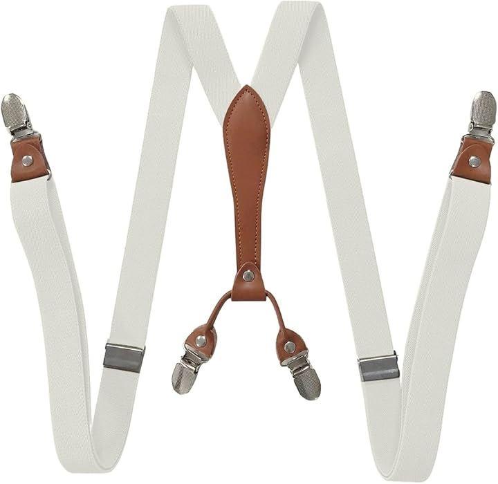 カジュアルからフォーマルまで幅広使用できるシンプルで落ち着いたデザインの4点止めサスペンダー。