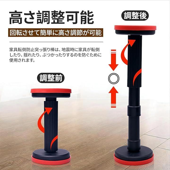 幅広い用途:耐震つっぱり棒は、緊急時に家具の転倒を防ぎ、地震時の被害を軽減します. 本棚、冷蔵庫、ナイトテーブル、キャビネット、ワードローブ、テーブル、ドレッサー、壁などの隙間に設置でき、家具の転倒を効果的に防ぎます