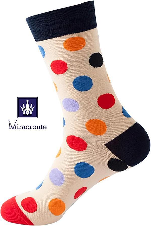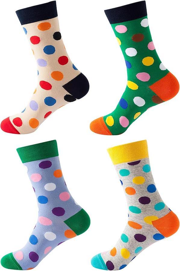 ドットパターン(水玉柄)のカラフル・クルーソックス 4足セットです。