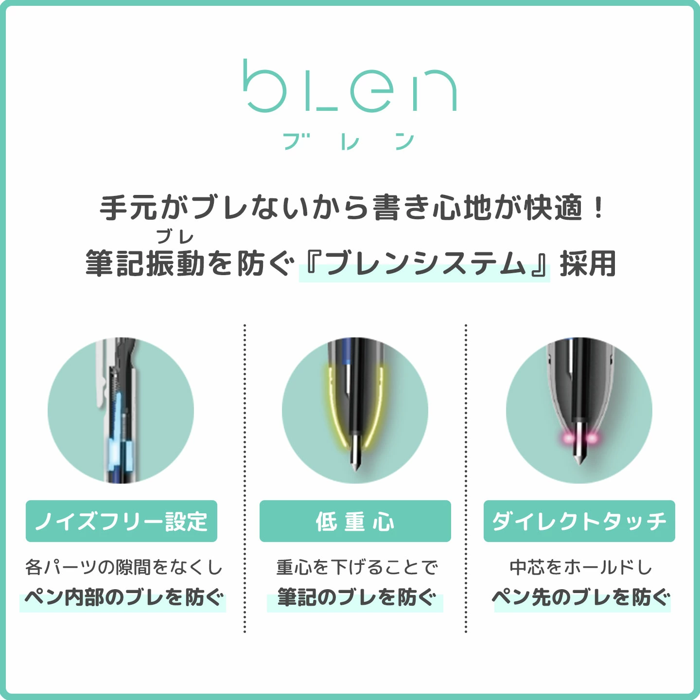 【ブレン 4+S】書くときのブレを制御するゼブラ独自の「ブレンシステム」搭載!ストレスフリーな書き心地を実現する『blen(ブレン)』シリーズに4色+シャープペンの多機能ペンが新登場。ベーシックなカラーに、シンプルなミッフィーやスヌーピーのイラストが大人可愛い印象。学生さんはもちろん、社会人の仕事用の一本にもおすすめです。