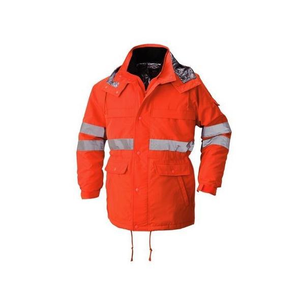●幅広の反射テープが暗闇から身を守る。安心・安全の東レ素材使用、フード取外し可、フロントファスナー、裏地メッシュ+アルミ+高機能綿キルト加工、樹脂ボタン