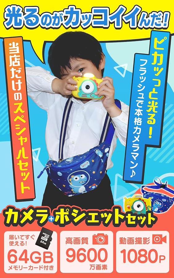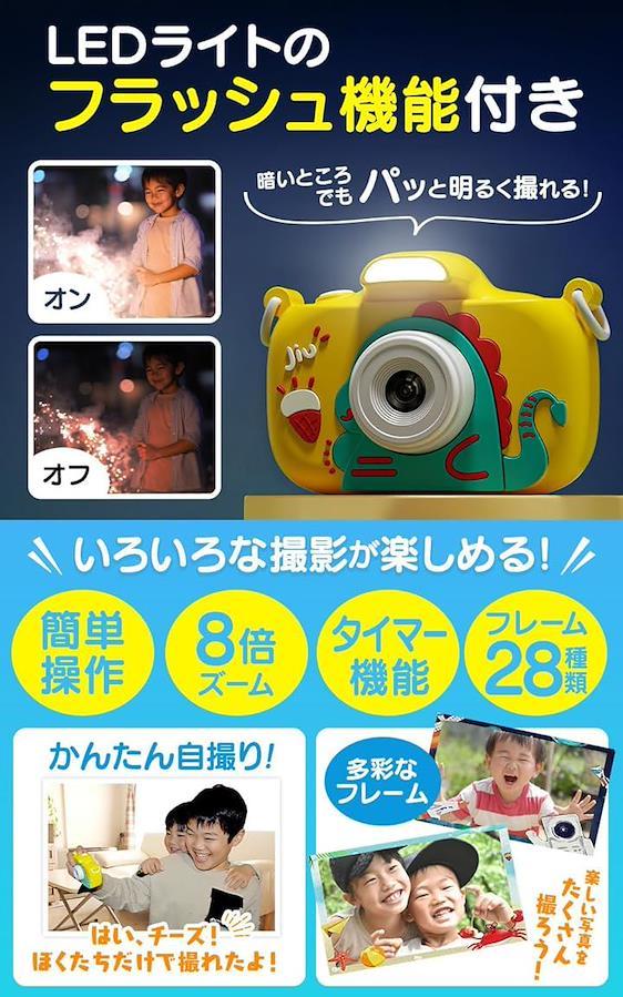 恐竜デザインがかわいいキッズカメラは、男の子に大人気。9600万画素の高画質で、写真も動画も楽しめる本格的な子供用カメラです。