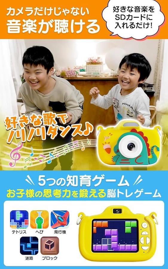 「音楽・ゲーム機能搭載で飽きずに遊べる」 撮影だけでなく、音楽再生・ミニゲームも楽しめる多機能キッズカメラ。