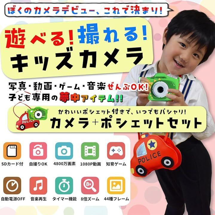 「ポシェット付きでお出かけに大活躍」 パトカー型デザインで男の子の心をつかむポシェットがセットで付属。お気に入りのキッズカメラをかっこよく持ち運べるから、お出かけがもっと楽しくなります。