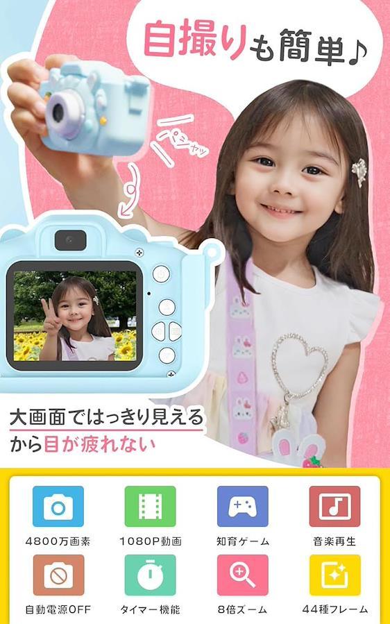 さらに、ゲームや音楽プレーヤーとしても遊べる機能があるので、子どもにとって飽きることのないカメラです。
