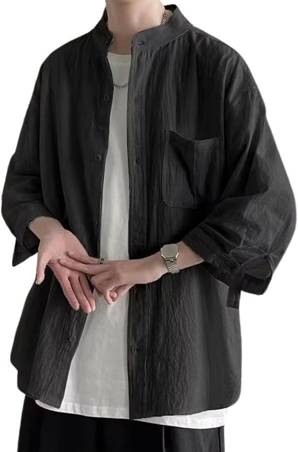 無地のデザインに加えスタンドカラー(立ち襟)を採用することで、シンプルながらも洗練された印象を演出。