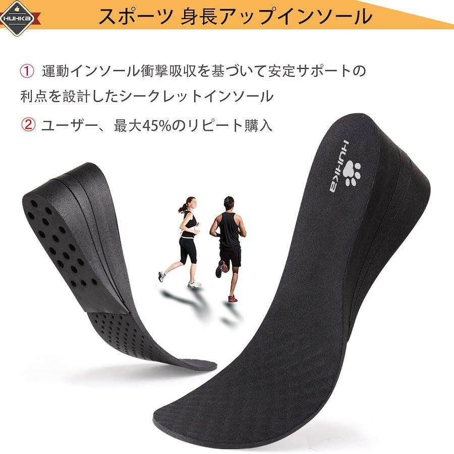 ??【こっそり7.5身長アップ&男女兼用】:靴に入れるだけで瞬間に外から見えずこっそり身長がアップでき、本来の自信が増え、身長がアップしたい方、足がほっそり長く見せた方、仕事やデートに、こちらのシークレットインソールなら、簡単に解決でき、良いスタイルになります。??【衝撃吸収&最適な履き心地が実現され】高弾力且つ良好な柔軟性のPU素材より、衝撃吸収でクッション性も良く、足の疲れが軽減でき、スポーツにもこのまま利用でき、長時間歩きもリラックスでき、また足と接触の面では専用吸着性の面を採用し、通気性も良く、足もすっきりになります。??【サイズフリー】本来このインソール高さが3㎝で(3cm/1.5cm2段付き)、ご好みより高さに自由に組み合わせ、全部組み合わせたら、7.5㎝アップでき、またインソールの裏に刻印されたサイズおよびガイド線通りにハサミで簡単に調整でき※インソールの高さが選びたびに、インソールを入れた靴にかかと部分は3㎝-4cm間に保留することがお勧めです。??【スポーツシークレットインソール様々な靴に利用でき】弾力と通気性が抜群で、スニーカーだけではなくて、ズック靴、スポーツ靴にはこのまま利用できます。お持ち靴のかかと部分の高さが5㎝以下なら、3.0㎝高さインソール進めて、6㎝かかと部分なら4.5㎝で(元インソールと1.5高さのと組み合わせ)、8㎝かかと部分なら7.5㎝(元インソール、1.5㎝.3㎝で組み合わせ)ご参考ください。??【品質保証システム付き】12ヶ月期間な安心品質保証より、ご商品に品質上では何かご問題がありましたら、ご注文番号をご連絡いただき、お客様の都合より、返金または返品をご対応いたします。