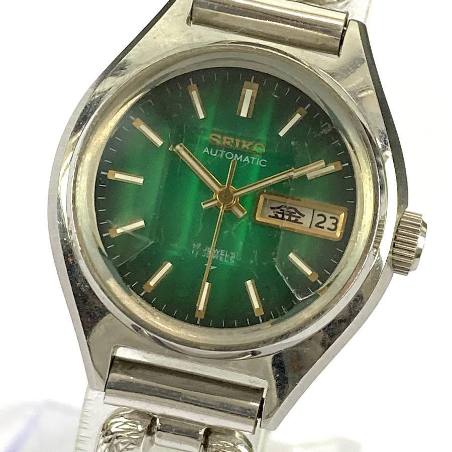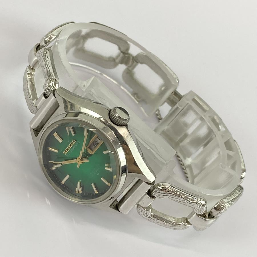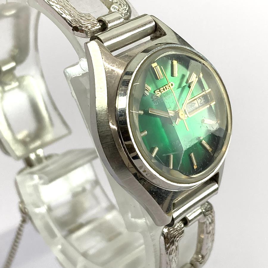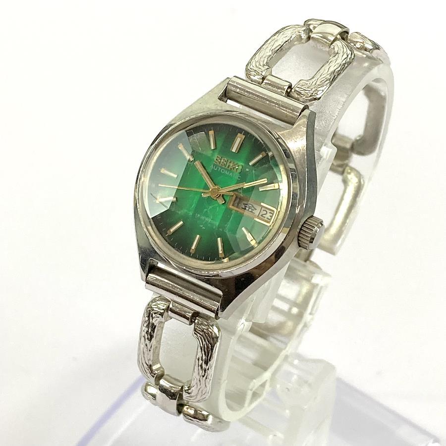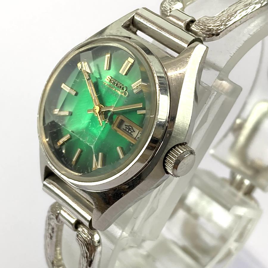70 年代精工自動 17 顆寶石綠色錶盤復古女士手錶,配有 5 片切割水晶