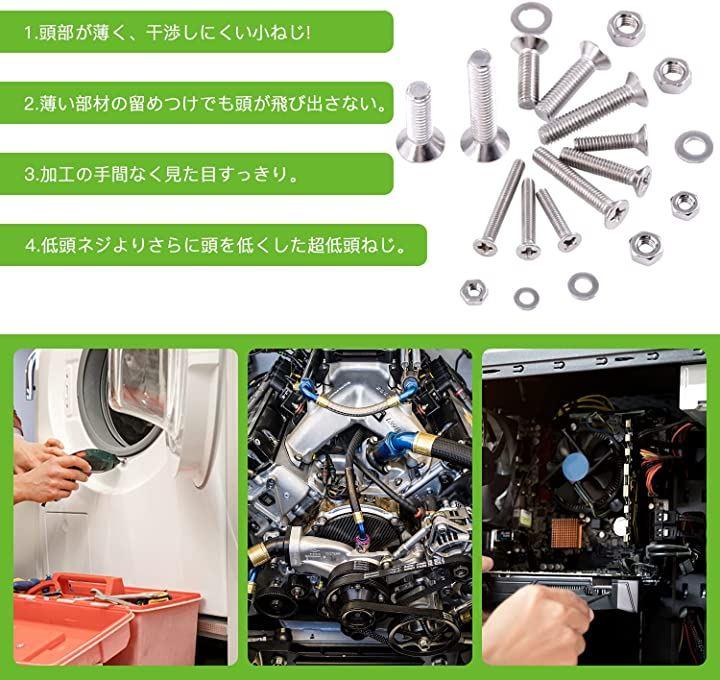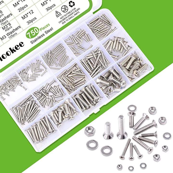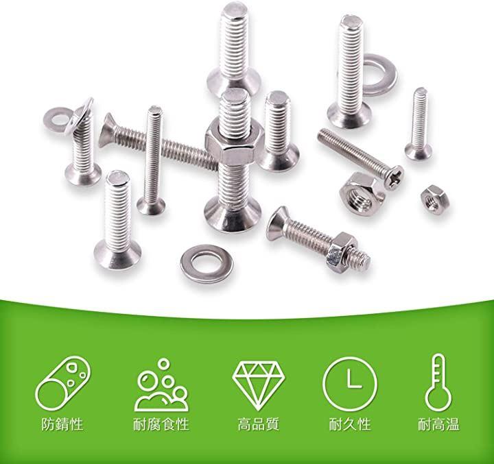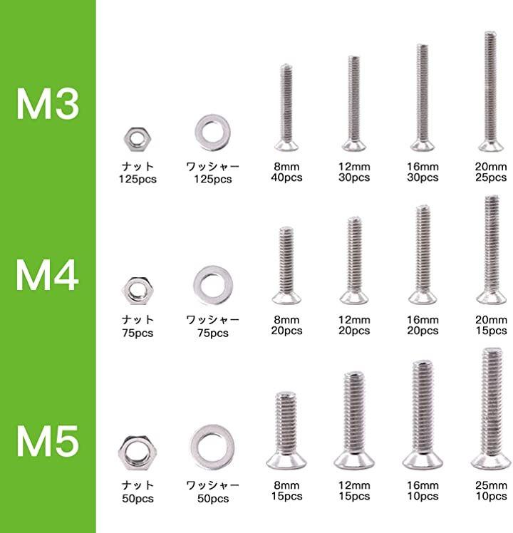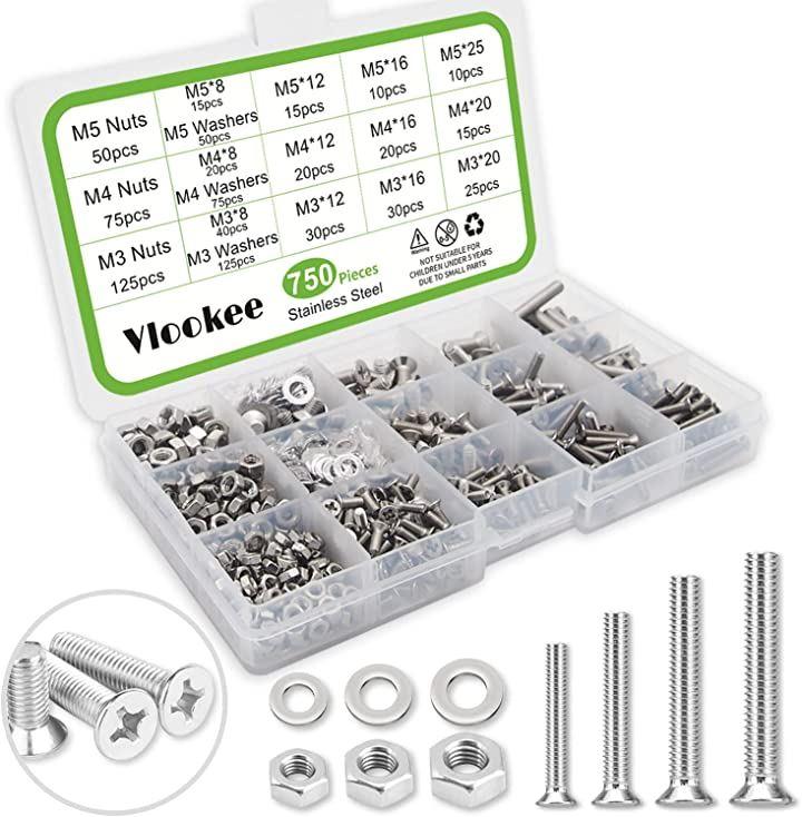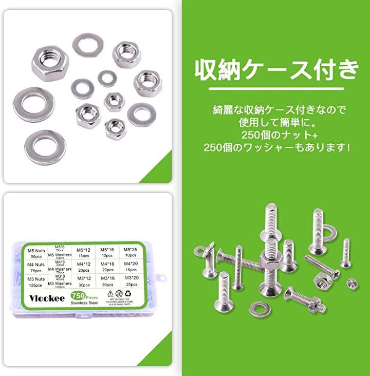 Vlookeeの750本入超低頭ねじセットM3M4M5皿ねじSUS304ステンレス十字穴付き
