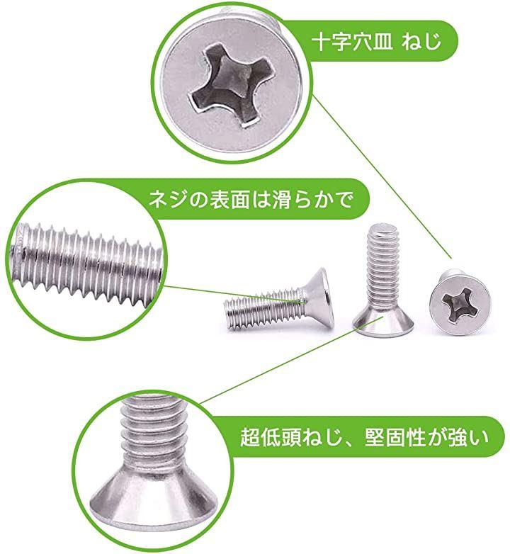 ・「皿ビス 材質」本製品は高品質のSUS304ステンレスを使用しており、頑丈で耐久性があり、抗酸化性、耐腐食性、耐高温性、優れた性能と高い靭性という特徴を持っています。