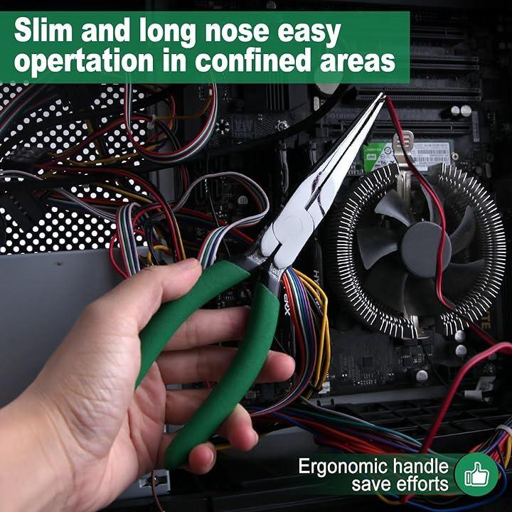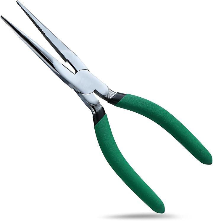 タイトなジョー: ロングジョープライヤーのジョーの鋸歯はしっかりと噛み合い、小さなファスナーを掴んだり引いたりする際に滑りにくく、指には小さすぎる対象物を掴んだりこじ開けたりするのに理想的です。