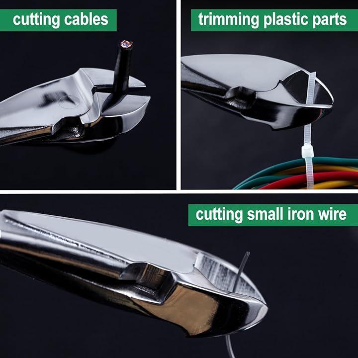 短いジョーと面取りされたカッティングエッジは、ワイヤの接近切断を可能にする。
